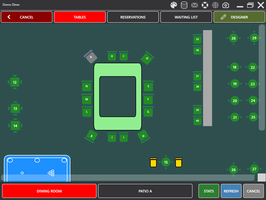 - CANCEL: Closes the seating chart and returns to the main screen.