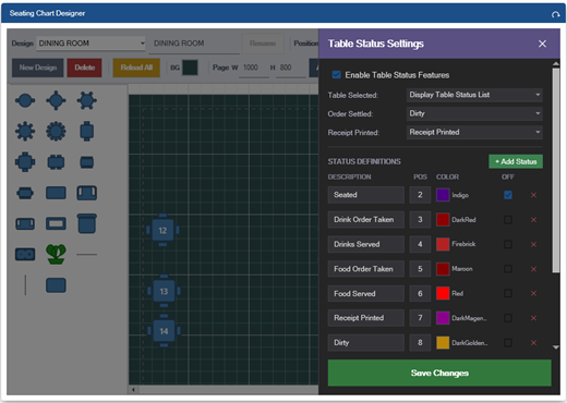 To configure table statuses, enter the Designer and click the Table Status button in the toolbar. A panel will appear with the following settings: