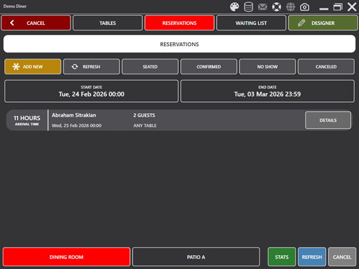- RESERVATIONS: Opens the reservations management overlay.