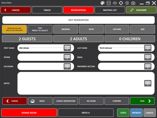 - WALKED OUT replaces No-Show, indicating the guest left before being seated.